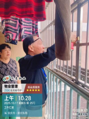 2026年1月12日,新河?xùn)|苑6#1703室業(yè)主的新購(gòu)蠶絲被,在陽臺(tái)晾曬時(shí)被突發(fā)大風(fēng)刮至小區(qū)外封閉廢棄工地的枯樹頂端。該工地雜草叢生、坑洼不平,四周設(shè)防護(hù)圍墻無法進(jìn)入,枯樹旁無任何支撐點(diǎn),取物難度極大。物業(yè)服務(wù)中心湯主任得知情況后,立即組織人員攜帶梯子、長(zhǎng)桿等工具趕赴現(xiàn)場(chǎng)。兩名物業(yè)人員穩(wěn)固扶住梯子做好安全防護(hù),湯主任親力親為,借助梯子翻越鐵欄圍墻,小心翼翼用長(zhǎng)竹篙將蠶絲被完好取下。